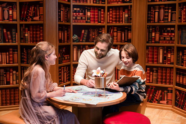 De overweldigende koninklijke ervaring begint op het moment dat gasten de grote lobby binnengaan: een architectonisch meesterwerk geïnspireerd door de bibliotheken van wereldberoemde Franse kastelen.