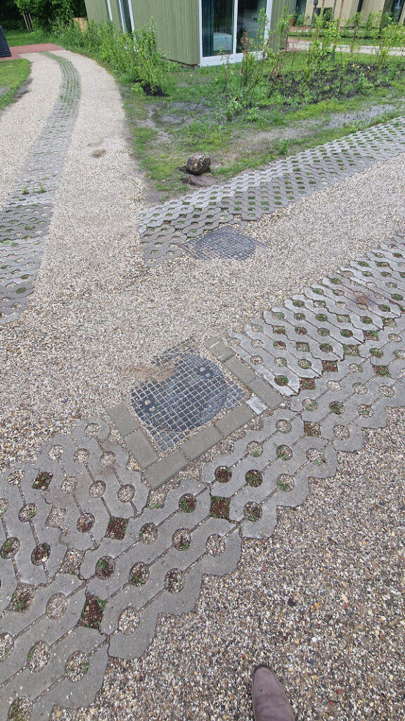 Bij de afvoer van regenwater speelt de natuurvriendelijke opzet een belangrijke rol. Van den Heuvel laat zien hoe dat werkt. “Al het regenwater moet worden opgevangen in een afgescheiden rioolleiding. Die mondt op dit terrein uit in wadi’s die door het wisselende waterniveau een bijzonder ecosysteem ondersteunen. Als er erg veel regen valt, dan stromen de wadi’s over en wordt het water overgeheveld naar het riviertje De Dinkel.”